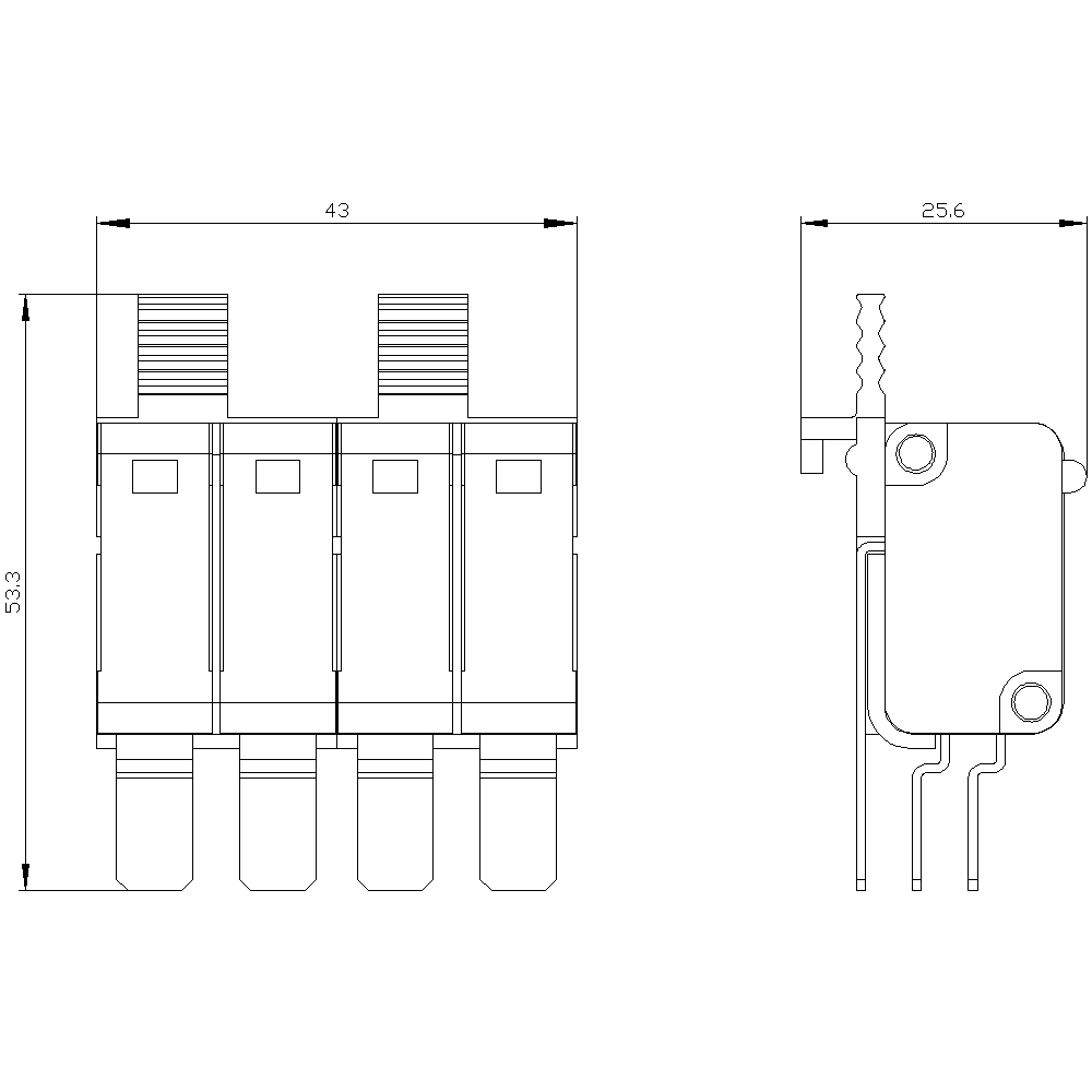 segédkapcsoló AUX 2CO + 2CO 2x szabványos 400 V AC + 2x digitális 24 V DC váltóérintkezők tartozékok megszakítókhoz 3WL10 / 3VA27 Tartozékok és alkatrészek 3WL10-től 1250A-ig terjedő légmegszakítókhoz. (3VA27 - 1600A is) A 3WL10 légmegszakító tartozékai é